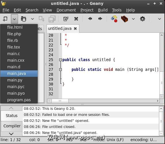 Geany支持所有主要的编程语言,并提供所有常用功能。您对IDE的期望,例如语法突出显示和行号。当您打开它时(根本不需要很长时间),您会得到一个干净的界面和大量的空白空间。编译器的所有消息都将显示在窗口底部的框中,这对于调试代码非常重要。在这里,您可以打开一个新文件,并为您要编程的语言选择默认文件类型。
