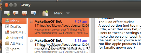 显然,并非您喜欢的所有功能要在电子邮件客户端中查看-您不能使用多个电子邮件帐户,没有电子邮件签名,仅支持IMAP。尽管如此:快速检查并回复电子邮件所需要的大部分是。如果您只是想快速运行一些好东西,那么Geary会为您工作。