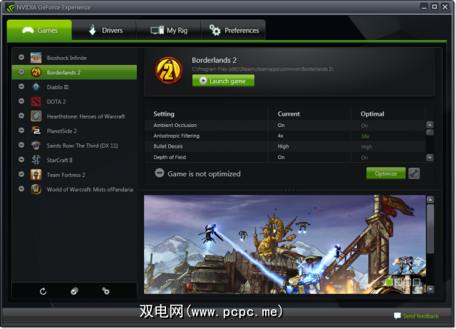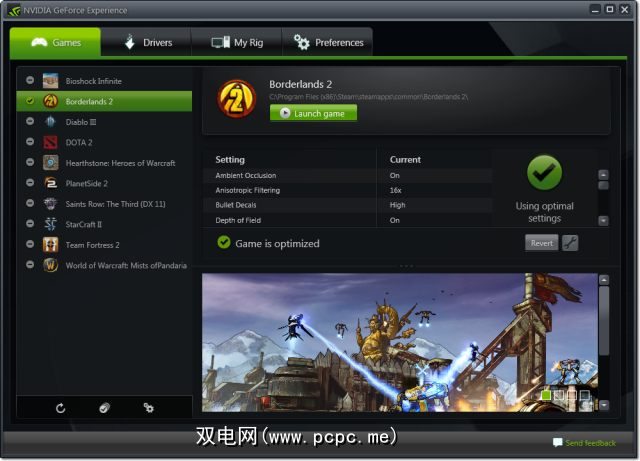 这些设置由NVIDIA自己提供。 GeForce Expereince从NVIDIA的数据中心为您的计算机的图形硬件(GPU),CPU,RAM和显示器提供最佳,最佳的设置。您也可以单击扳手按钮并手动调整设置。游戏面板中的屏幕截图会随着您更改设置而改变,从而使您能够在启动游戏之前查看质量差异。