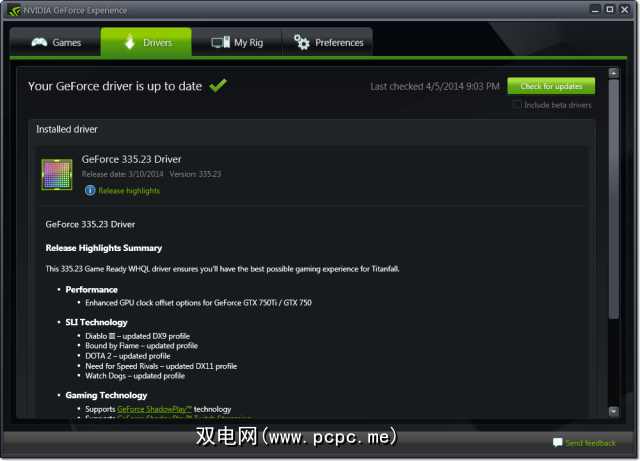 GeForce Experience软件会自动检查驱动程序更新,并允许您选择是否安装它们。它还会定期下载新的游戏配置文件-设置的集合,这些设置控制图形驱动程序在加载特定游戏时执行的操作。诸如NVIDIA之类的图形硬件制造商使用此类配置文件进行调整并帮助实现最佳性能。