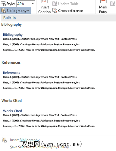 最后,单击参考书目下拉菜单,然后选择插入参考书目。您的资源将全部显示在文档的末尾。