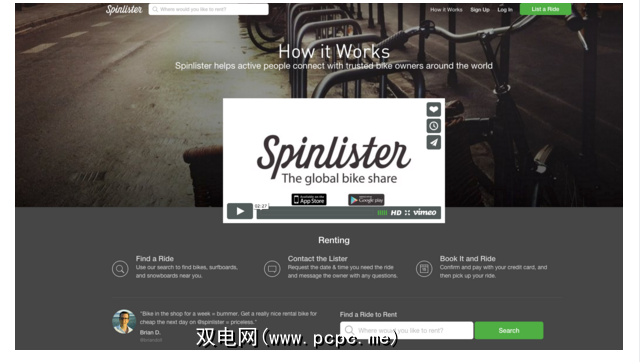通过Spinlister的网站,iOS或Android应用程序,用户可以轻松租用世界各地其他人的自行车,冲浪板,滑雪板和滑雪板。如果您要访问新城市,或者想以即兴的自行车骑行或一日游来惊喜自己所爱的人,则此点对点共享服务特别理想。
