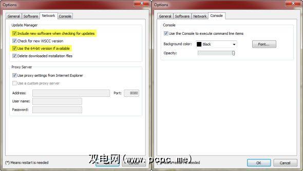 WSCC中有四个选项卡,其中包括:常规,软件,网络和控制台。我为设置选择了一些其他选项,并在下面用黄色突出显示了这些选项。默认情况下,不选中这些选项。是否选择它们取决于您,我不能说它们有很大的不同,这只是一个偏好问题。