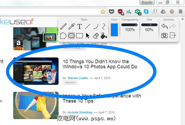 即使默认情况下Chrome和Firefox中不提供此功能,也可以通过使用扩展程序使用。安装同时适用于Chrome和Firefox的 Web Paint 。它使您可以书写,绘图,着色,标记,甚至可以截取屏幕截图,然后可以下载或打印。