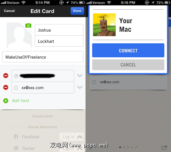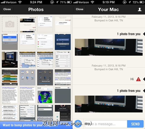 我对凹凸的简单性感到惊讶。首先,我在手机上打开了该应用程序,然后在Mac上打开了Bump主页。然后,我将手机猛烈地撞到了空格键,并且我的iPhone和Mac都立即连接了(当然要经过批准)。从那以后,我就可以分享我的照片了。我的设备没有任何注册或本地搜索-可以立即使用。该设备在电话和其他设备之间的功能类似。例如,在另一部iPhone上,您要做的就是将您的手机猛撞到其他人的手机上,您会立即连接起来。