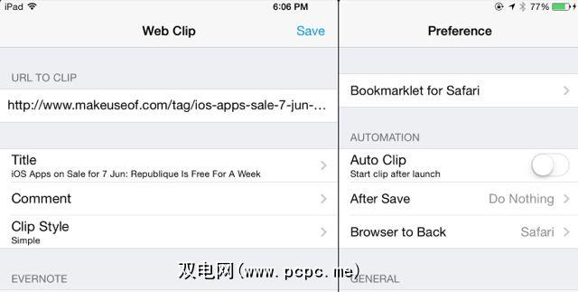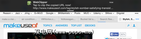 EverWebClipper将选定的文章保存到默认或指定的笔记本中。您可以启用一项称为自动剪辑的功能,这意味着在Safari中复制URL时,通知会从页面顶部下拉,该选项提供了将页面发送到EveryWebClipper的选项,然后可以将该页面保存到Evernote。
