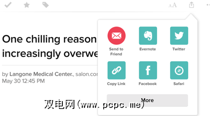 许多Evernote用户喜欢剪辑和保存各种网页中的文章。即时阅读服务和iOS应用程序Pocket(免费)将选定的文章共享到指定的Evernote笔记本电脑。