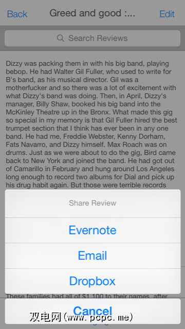 Everclip按日期对剪辑进行分类,并且可以将剪辑保存到您的Evernote帐户中的默认或手动指定的笔记本,并分配了默认标签和位置。每个剪辑或剪辑组的第一行用于Evernote标题,并且可以在发送剪辑之前编辑剪辑的内容。不幸的是,每个剪辑或剪辑组都必须手动发送到Evernote。如果用户可以选择批量发送剪辑,或者甚至在打开应用程序时以某种方式自动发送剪辑,那就太好了。将片段复制到Evernote后,它们会自动从EverClip剪贴板中删除。