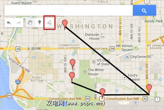 除了添加位置和个性化图钉之外,您还可以在地图上添加线。
