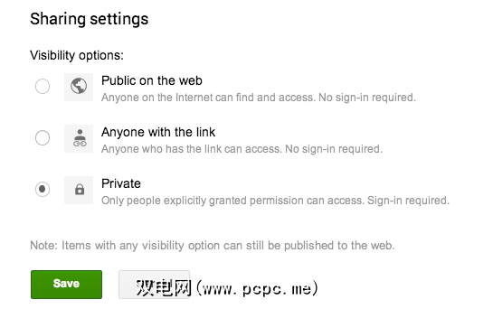 点击“共享"按钮后,您可以访问与任何Google云端硬盘上的共享设置相同的共享设置文献。您可以使地图完全公开,只有具有链接的任何人都可以访问,或者只有邀请您查看地图的特定Google用户才能访问。