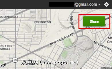 创建地图后,可以通过多种方式共享地图。如果您要创建供个人使用的地图,则可以将其完全保密。默认情况下,您创建的所有地图都是私有的。如果您愿意共享地图,则可以与特定的Google用户共享,也可以公开共享。点击地图右上角的绿色“共享"按钮: