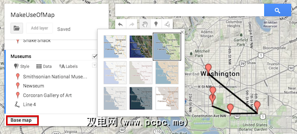 除了自定义图钉外,您还可以更改地图的整体外观,并可以选择九个主题。通过单击基本地图可以访问这些主题。