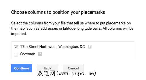 那么,您需要在电子表格中需要什么样的信息才能将位置实际导入到地图中?您所需要的只是两列,其中包含地址和位置名称。导入位置时,Google地图将首先询问您哪一列包含以下地址: