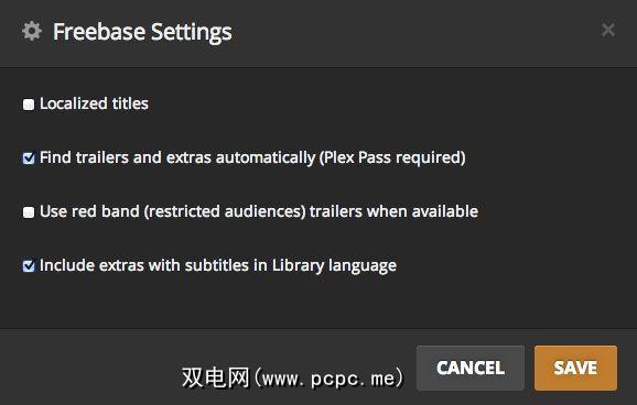 打开Freebase代理的首选项并确保自动查找预告片和其他内容选项已启用。在这里,您还可以选择是否下载(更明确的)红色乐队预告片,并在字幕中包含额外内容。