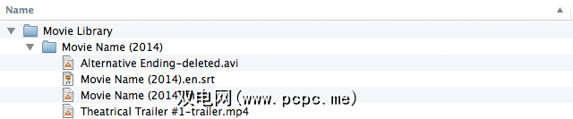 如果您以更加分层的结构来组织您的库,并为外部字幕文件和元数据使用了不同的子文件夹,那么您还可针对每种类型的额外内容组织带有不同子目录的额外内容。有关更多信息,请参考命名准则。
