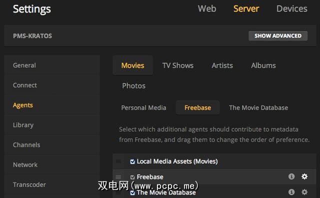 To verify your media server configuration, open your Plex Media Server settings (you can also access these from the Plex/Web app if you’ve configured Plex for remote access ) and browse to Agents > Movies. Make sure the Freebase agent is enabled in both the Freebase and The Movie Database tabs. It doesn’t need to be at the top of the list.