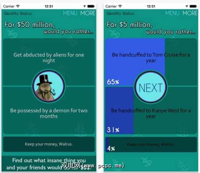 此应用的前提是富有创造力。 “富裕的海象"有110亿美元可以捐出,但只有当您执行通常会避免的荒谬行为时。