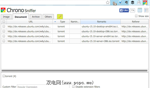 被称为“ Chrono Sniffer"的东西通常检测所有链接,图像,音频和网页上的视频,您可以过滤所需的内容和不需要的内容。它可以很好地下载选定的文件,但是并没有检测到我测试过的页面上的所有文件。