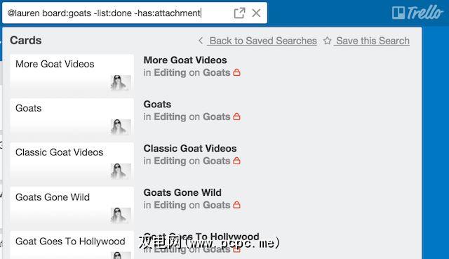 如果您使用的是Trello Gold,则保存的搜索最终可能是排列这些列表的一种好方法。使用“ @me",“-list:done",“ due:week"和“ -has:members"之类的运算符,您可以进行特定搜索以找到正确的项目,然后单击位于以下位置的“保存此搜索"链接
