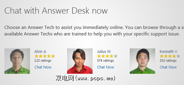其中一件整洁的事情就是您实际上可以选择您想和谁聊天。技术人员微笑的面孔旁边是他们的评分,让您知道过去的访客对他们的支持有多有用的总体共识。