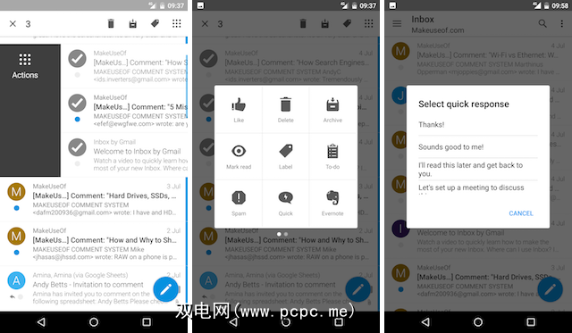 这些功能的范围从归档和删除之类的基础知识,到将电子邮件转变为待办事项列表条目或将其转发到您的Evernote帐户,甚至发送预先撰写的快速回复-您再也不需要写另一封“谢谢!"电子邮件。