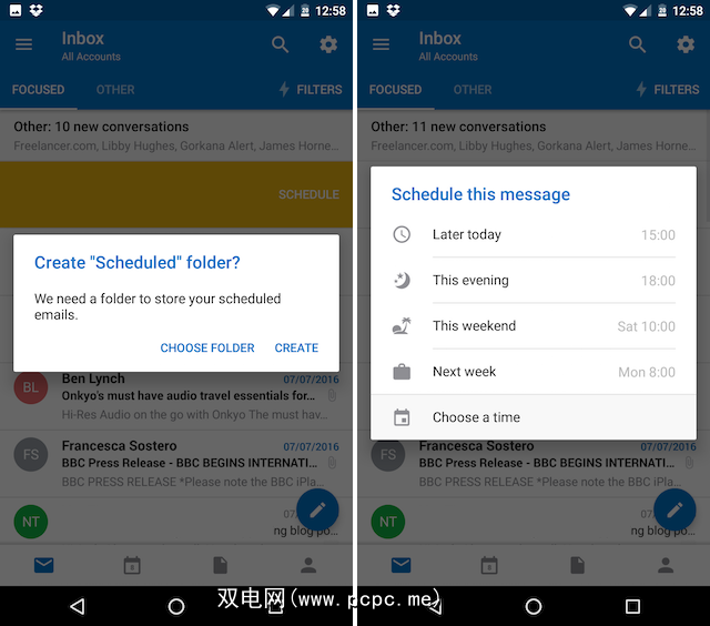 最重要的是能够通过向右滑动电子邮件来安排电子邮件的时间。这样会从您的收件箱中删除该邮件,并且只会在您选择的时间重新出现-带有新的通知。