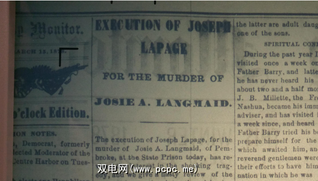 最近,我和我的女儿正在新罕布什尔州的一个小镇研究一次历史性谋杀案。我们通过附近城市图书馆的缩微胶片报纸记录进行归档,结果发现工资不菲。报纸上的页面详细描述了谋杀,审判和处决。