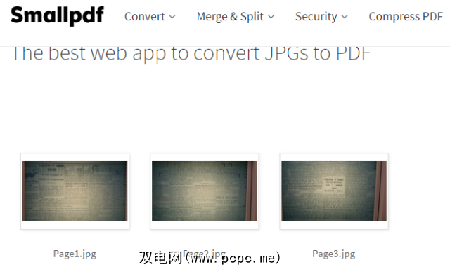 SmallPDF可让您将捕获的图像拖到“ 此处拖放图像"区域中,并且图像是就这样转换为PDF。不错的功能是,只需一次将所有图像拖入即可将许多图像拼凑到一个文档中。