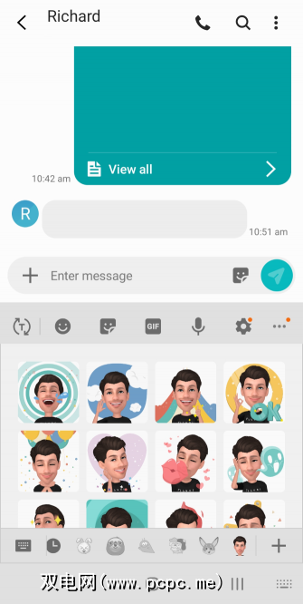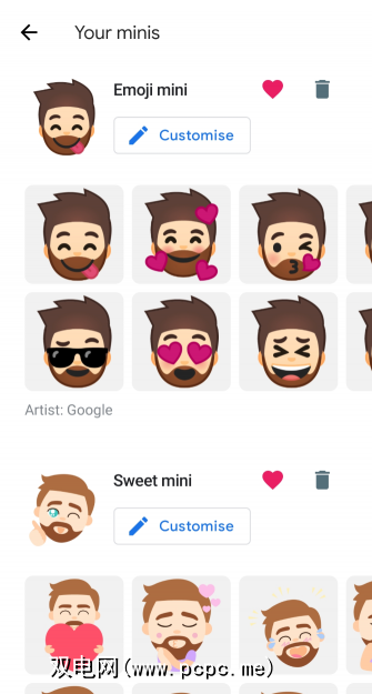 您最多可以创建三个不同的表情符号化身。一些贴纸包括多人,因此这些其他的化身会出现在这里。这意味着您可以将贴纸发送给包括您和他们在内的朋友。