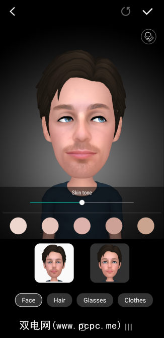 Face Cam不会扫描您的面部来创建表情符号。相反,您可以使用不同的类别从头开始构建它。选择您的头发,肤色,眼睛形状和类似特征。