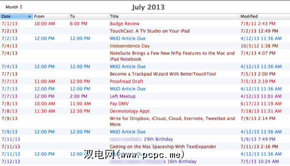 与日历不同,BusyCal还包括一个事件列表视图,可以按日,周,月,和一年。与传统的日历视图一样,日历列表也可以打印或保存为PDF。