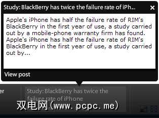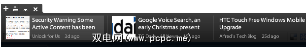上面的屏幕截图仅向您显示屏幕的一小部分。滚动条在水平或垂直方向上横跨整个屏幕,并且始终以您喜欢的速度滚动。它看起来与您喜欢的电视新闻来源中的体育或股票行情自动收录器非常相似。当您找到喜欢的项目时,只需单击它,然后会出现一个小的预览框,其中包含指向文章或文章本身的链接。