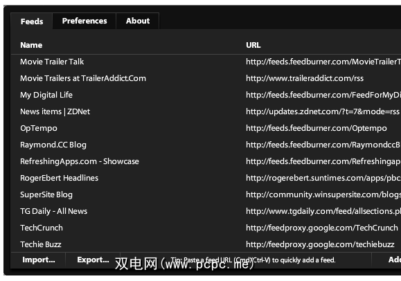 当然,您也可以管理供稿,包括通过OPML文件导入。