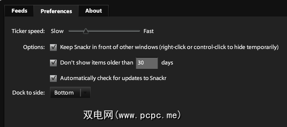 首选项是有限的,但您几乎可以得到所有需要。您可以按照自己的意愿加快和降低速度,将置顶架移到您的首选位置,删除已达到一定年龄的物品,还可以控制置顶架是否保留在所有窗口的前面。