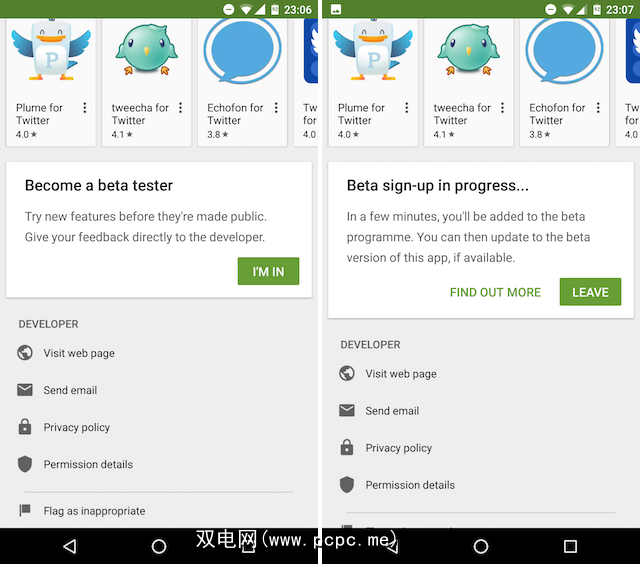 今年早些时候,发布了Play Store应用程序的更新版本,使用户可以直接在标准应用程序列表页面中选择加入和退出Beta版程序,这简直很难。