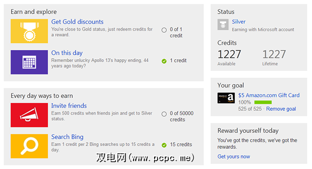 每个信用点价值0.01美元,您每天最多可以赚取15个信用点。控制台会显示您可以采取的所有可能的操作,以赚取当天更多的积分。 Microsoft有时会进行促销和奖金活动,使您获得更多的积分,但是在大多数情况下,您可以期望每月获得大约500积分(5美元)。