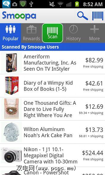 扫描新物品非常容易。首次点击扫描时,系统会要求您创建一个Smoopa帐户或登录到您已经创建的帐户。这是必要的,以便Smoopa可以跟踪您扫描了多少次并报告了其价格,随着每次操作,您的奖励余额会略有增加。