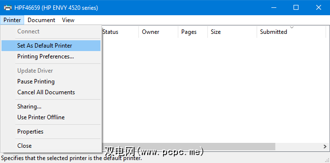 单击顶部工具栏上的打印机,然后单击设置为默认打印机。您可能会看到一条消息,内容为:“将此打印机设置为默认打印机意味着Windows将停止管理默认打印机。"如果这样做,请单击确定。