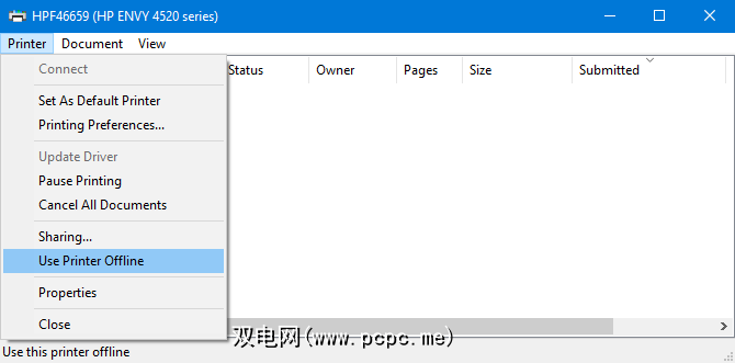 您应检查是否未启用“脱机使用打印机"模式。您可能是意外执行此操作,或者打印机或某些软件已将其打开。
