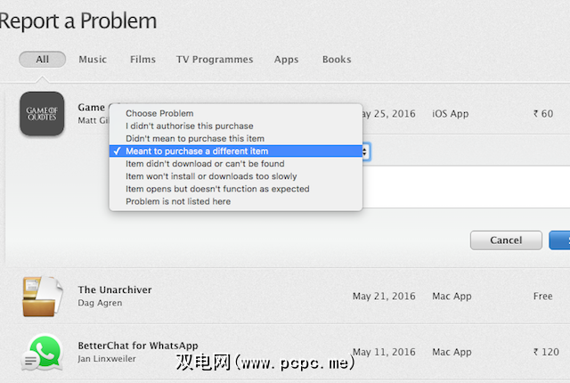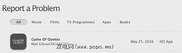 报告问题会显示您最近在所有Apple设备上购买和下载的所有内容。因此,如果您有很多东西,“全部"类别将是压倒性的。相反,为了便于查找要退货的物品,请选择以下类别之一:音乐,电影,电视节目,应用和书籍。