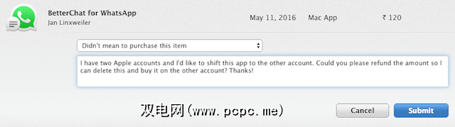虽然可以通过Mac App Store要求退货,但是最好使用专门的在线网站,因为无论如何Mac商店都会带您去那里。如上所述,该站点可同时在iOS和OS X上运行,因此没有其他尝试的必要。