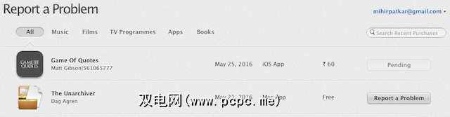 如果未收到回复,您可以重新访问reportaproblem.apple.com并登录以查看退款请求的状态。如果Apple正在对此进行处理,则按钮上将显示“待处理"而不是“报告问题"。