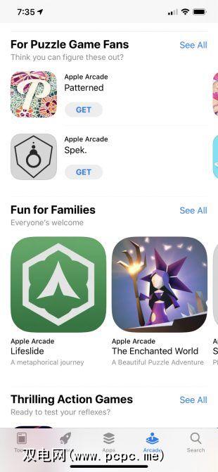 以前浏览过App Store的任何人都应该熟悉该设计。 Apple提供了许多不同类别的游戏,例如动作,冒险和家庭,以便更轻松地找到您想玩的游戏。