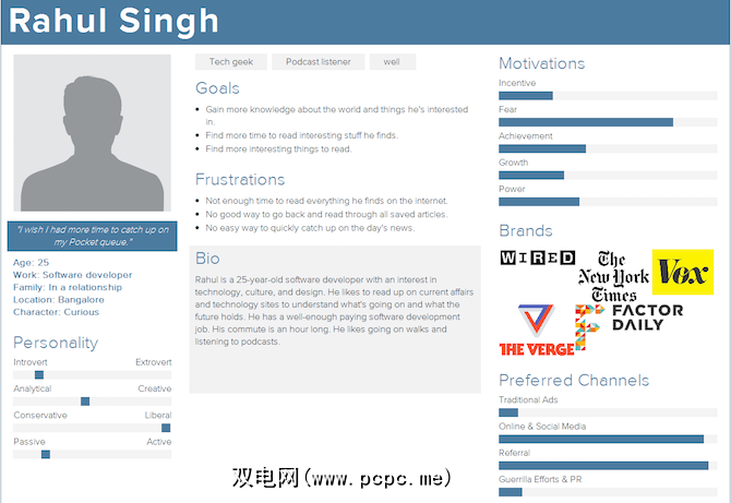 一旦有了相关的见解,团队便开始考虑最终用户。对用户产生共鸣的一种方法是创建角色。它们是最终用户的替身。他们可以掌握基本信息,例如人口统计信息,喜好与不喜欢。或者,您可以更深入地研究他们的目标,理想和生活中的其他细节。