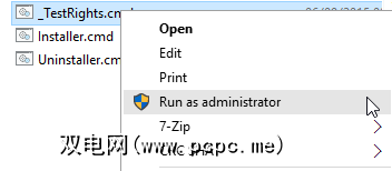 右键单击 _TestRights.cmd ,然后从上下文菜单中选择以管理员身份运行。这应该会打开一个命令提示符,您将在其中看到一些服务正在创建(如果没有发生,请重新启动PC并再次运行_TestRights.cmd文件)。