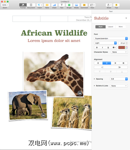 页面在工具栏中并没有很多按钮,但是这并不意味着它没有功能。 。最新的版本(5.5)根据文档中选定的元素显示工具。例如,当选择文本时,字体,正文和对齐工具将显示在侧栏中。同样,当选择图像元素时,将出现图像调整和对象布置工具。虽然这种方法意味着工具侧栏不再像在应用程序的先前版本中那样浮动到一侧,但它确实减少了多余的鼠标单击以获取适当的工具。