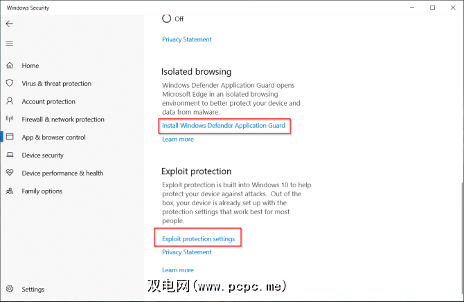 您可以控制Windows从网络上下载应用程序和文件时的行为。打开 Windows Defender Application Guard ,以在安全的隔离浏览环境中打开Edge。漏洞利用保护会自动将许多漏洞利用防御技术应用于系统进程和应用程序。