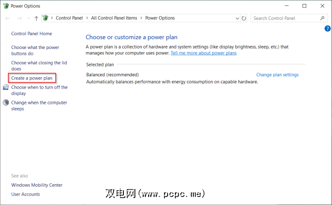 单击其他电源设置链接以打开“控制面板"中的“电源选项"页面。您可以根据需要创建自定义Windows电源计划。