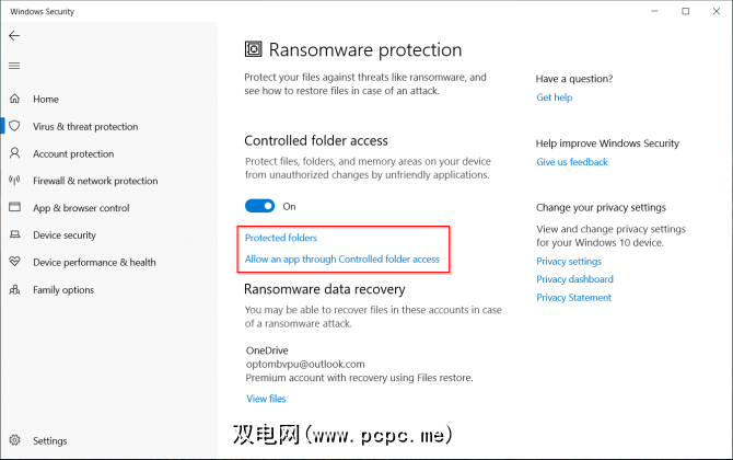 此版本1709中引入的此功能可以防止恶意和可疑应用程序制造恶意软件。更改存储在指定文件夹中的任何文件。要启用此功能,请转到“病毒和威胁防护"页面,然后单击管理勒索软件防护。打开受控文件夹访问并修改文件夹列表。
