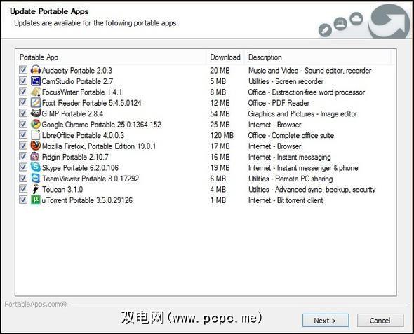 PortableApps从技术上讲不是一个应用程序更新程序,但它确实提供了一个更新程序,并且非常适合您外部设备上安装的应用程序。
